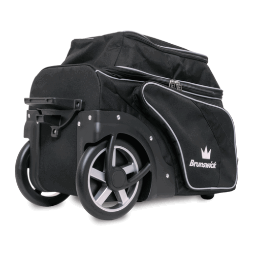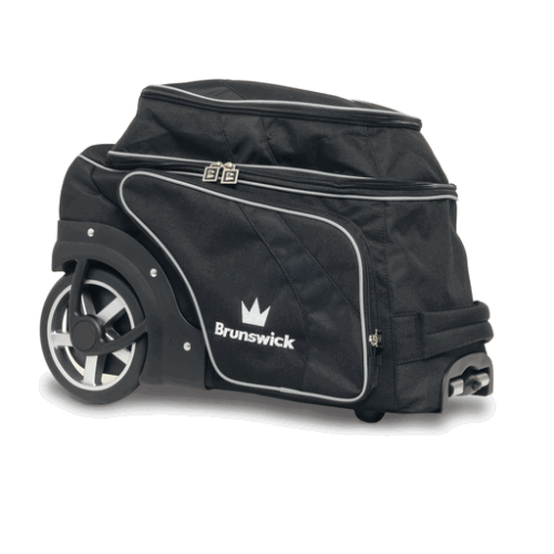 Brunswick Charger Double Roller Bowling Bag Black The Brunswick Charger Double Roller Bowling Bag has lots of features you will love! This bag is equipped to conveniently carry 2 bowling balls with a large front shoe compartment, larger sized zippered accessory pouch, plus 3″ molded groove plastic wheels! Color: Black Innovative padded base design Unique sleek handle system Extra-large, 7-inch wheels for stability Dual side accessory pockets Top pocket holds up to size 12 men’s shoes 1680D / 600D materials Embroidered logos Dimensions: 21″ L x 12″ D X 14″ H 5-year limited warranty