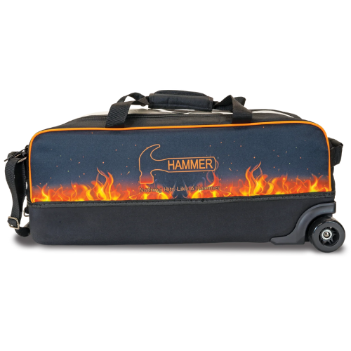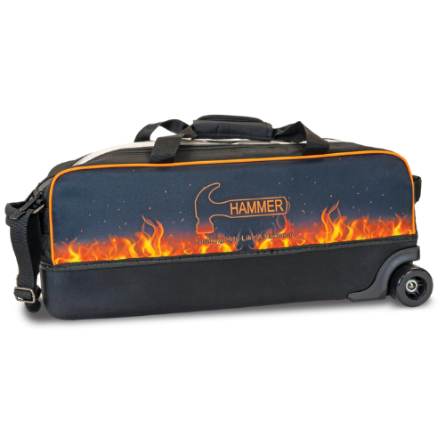 Looking for an easy way to carry three bowling balls while traveling? Get the Hammer Premium Slim Triple Tote Flame! It has a clear top so you can see your balls and a pull handle that adjusts to your height.