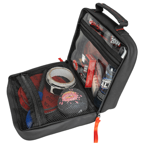 • Two separate zippered compartments inside allow for efficient organization of bowling aids and tools
