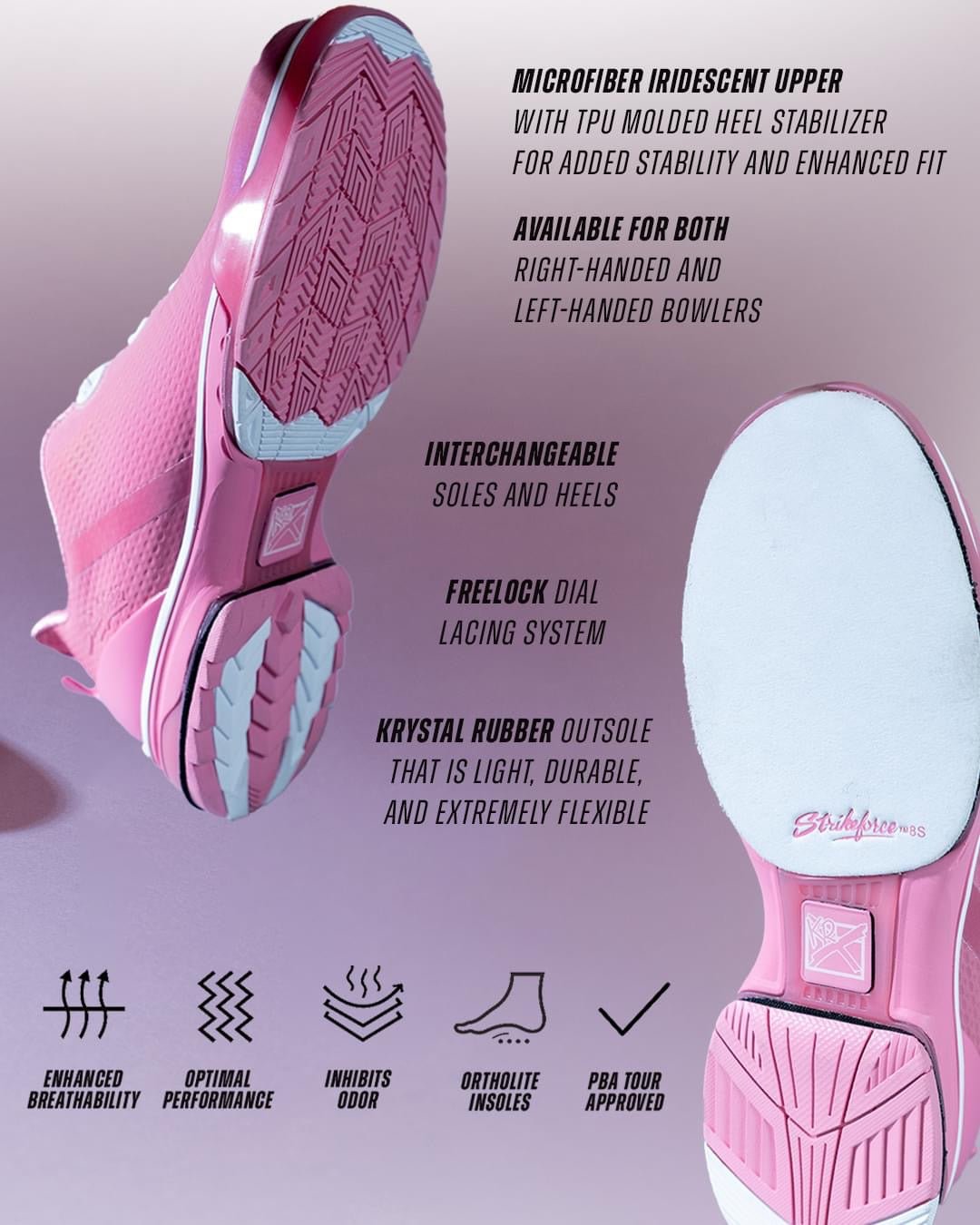 The KR Strikeforce Unisex Limited Edition TPC Hype Plus in Pink is a distinctive choice for bowlers seeking both style and performance. Designed with the right-handed bowler in mind, these shoes combine fashion-forward aesthetics with functional features. This limited edition is in support of the breast cancer awareness and a portion of the sale of the shoes will be donated to Breast Cancer Research.