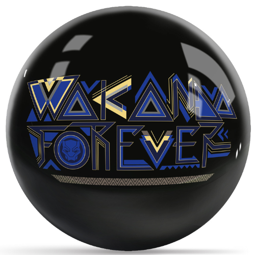 - Show your love for Marvel out on the lanes with this cool bowling ball. This design features Black Panther Wakanda Forever logos.