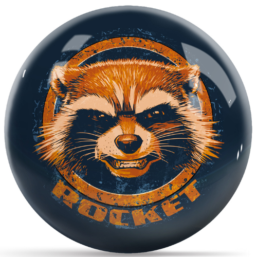 • Show your love for Marvel out on the lanes with this cool bowling ball.  This design features Rocket from Guardians of the Galaxy.
